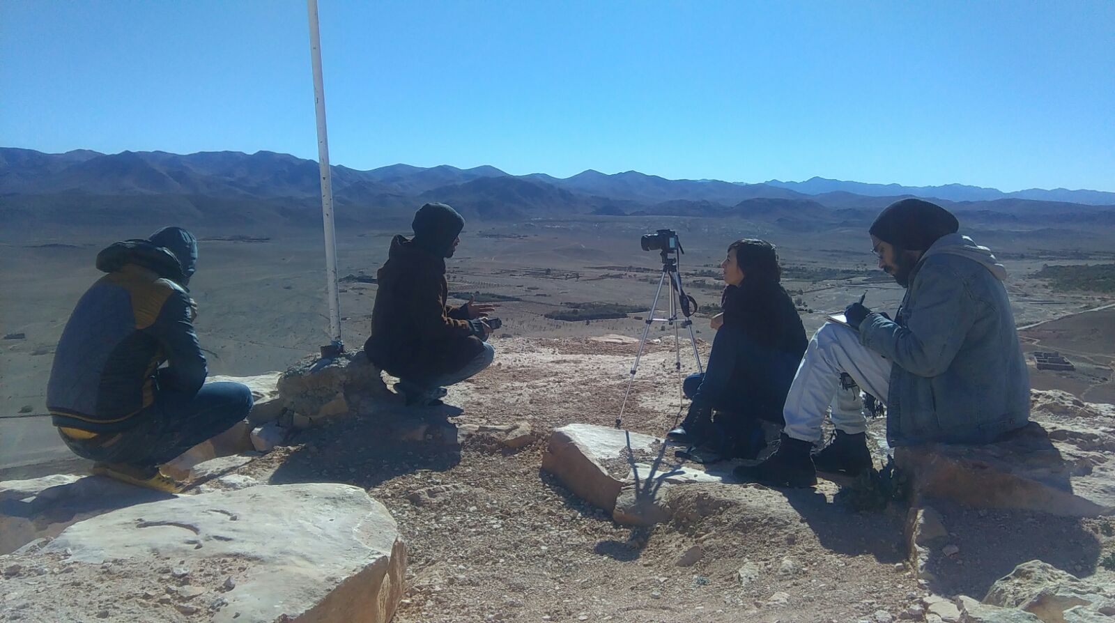 Interview with a group of environmental defenders in Imider, Morocco, who are protesting against a silver mine which is severely polluting their land and threatening their already scarce water resources (November 2017). Credit: Lorena Cotza